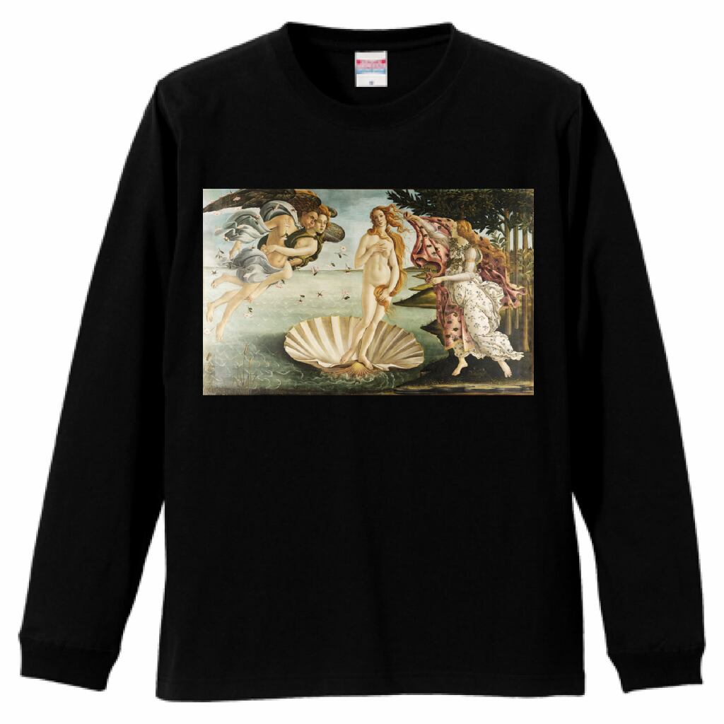 ヴィーナスの誕生 (ボッティチェリ):ロング袖Tシャツ(リブ付き・ブラック)世界の傑作絵画コレクション 【送料込・税込】