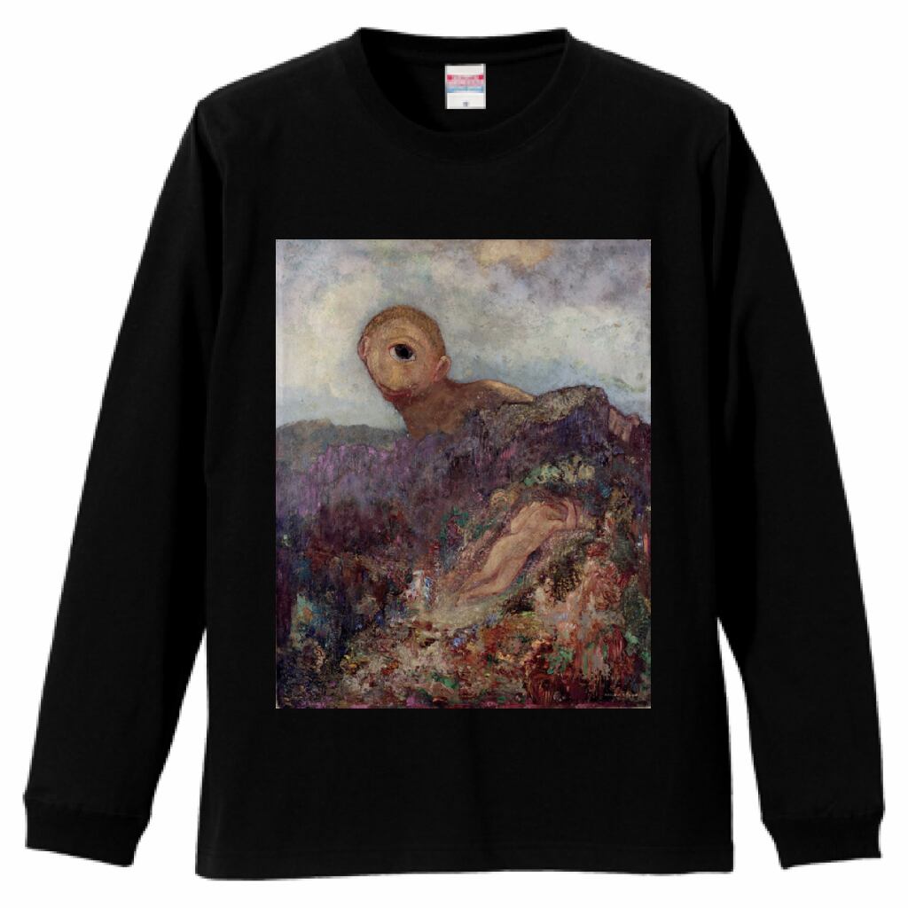 キュクロプス (オディオン・ルドン):ロング袖Tシャツ(リブ付き・ブラック)世界の傑作絵画コレクション 【送料込・税込】