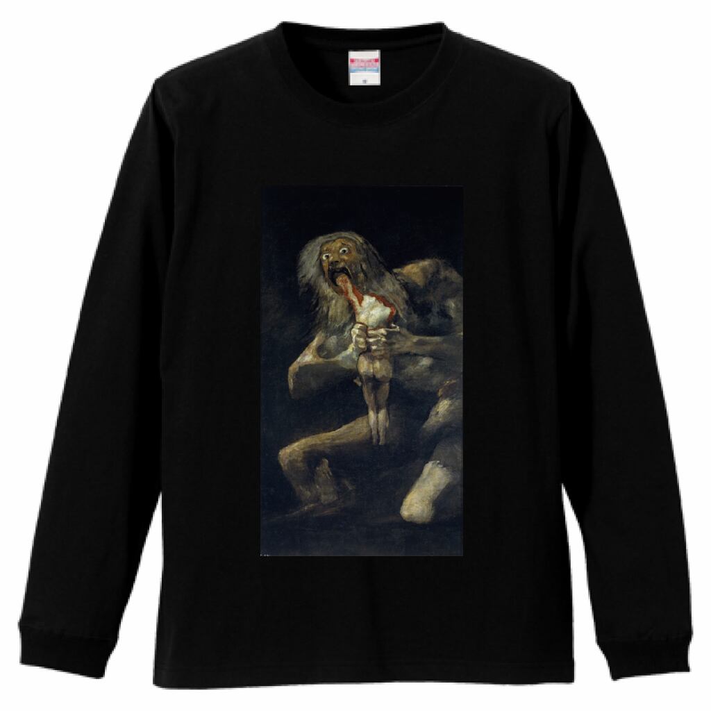我が子を食らうサトゥルヌス (フランシスコ・ホセ・デ・ゴヤ・イ・ルシエンテス):ロング袖Tシャツ(リブ付き・ブラック)世界の傑作絵画コレクション 【送料込・税込】
